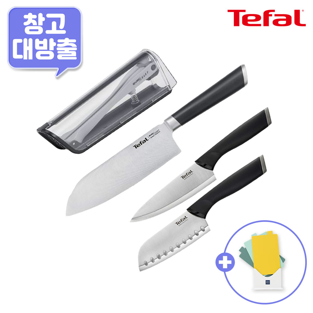 [11월한정특가] [창고대방출] [테팔] 컴포트 식도 2종 세트(식도15+산도쿠12)+에버샤프 산도쿠식도 16.5cm+전용 칼갈이 케이스+[사은품] GF 인덱스도마 3P 세트(거치대 포함)